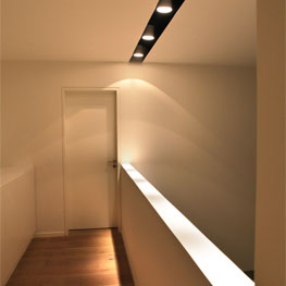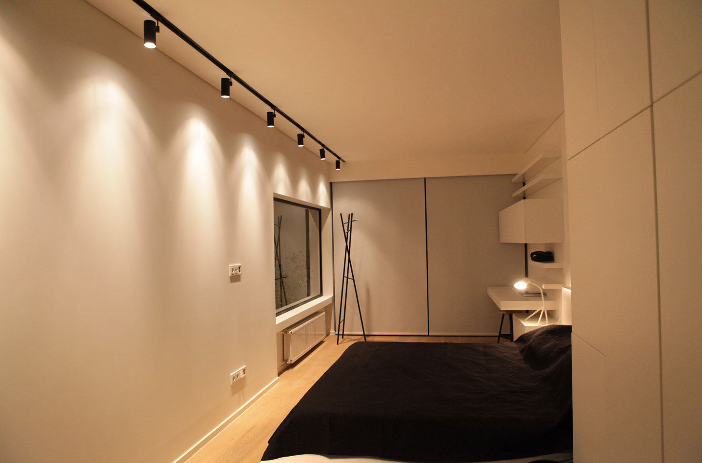 In order to keep the ceiling of the double volume clean from lighting fixtures, we created a groove and hid the lighting inside. As a result, the entire double volume was illuminated.